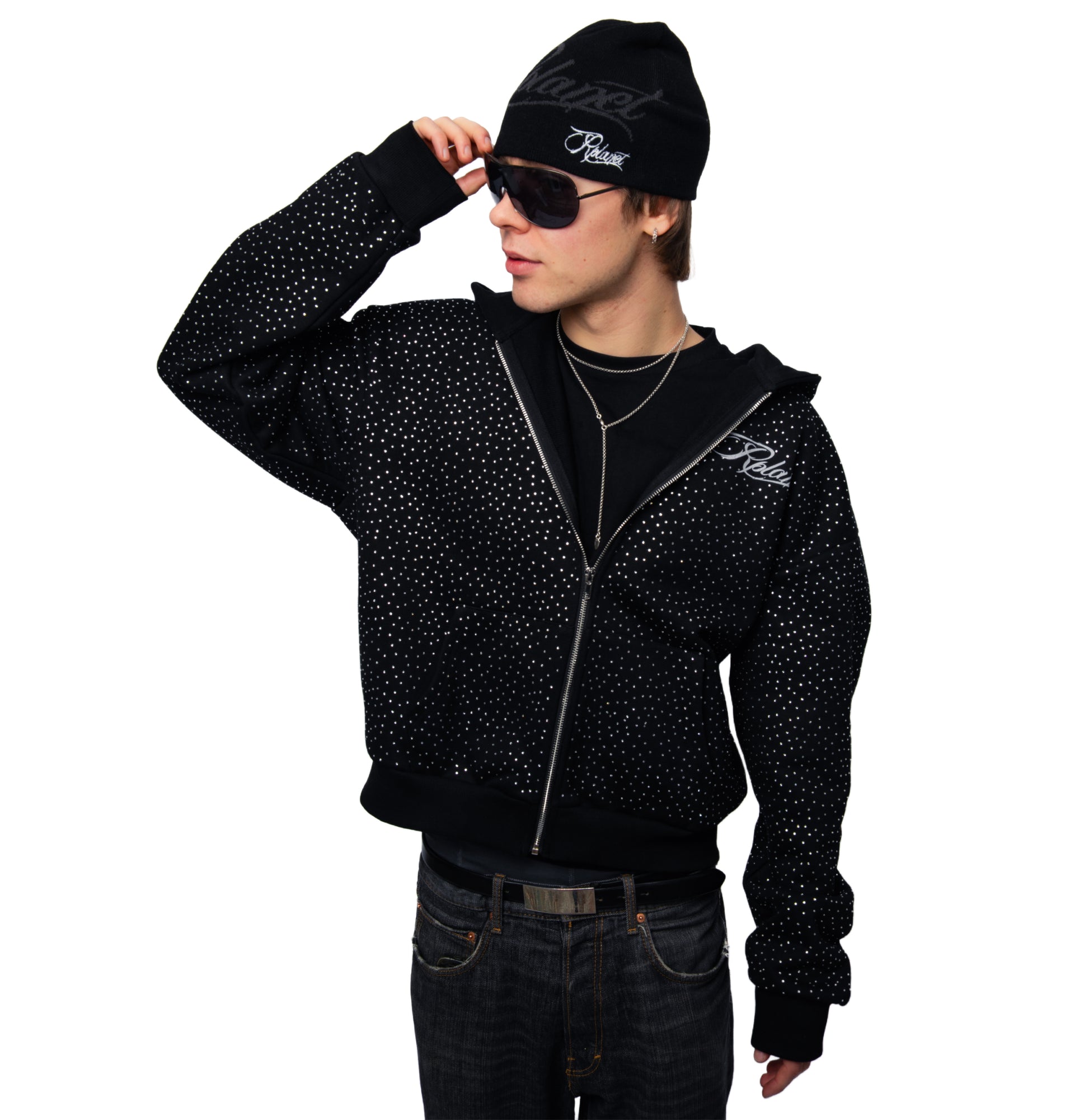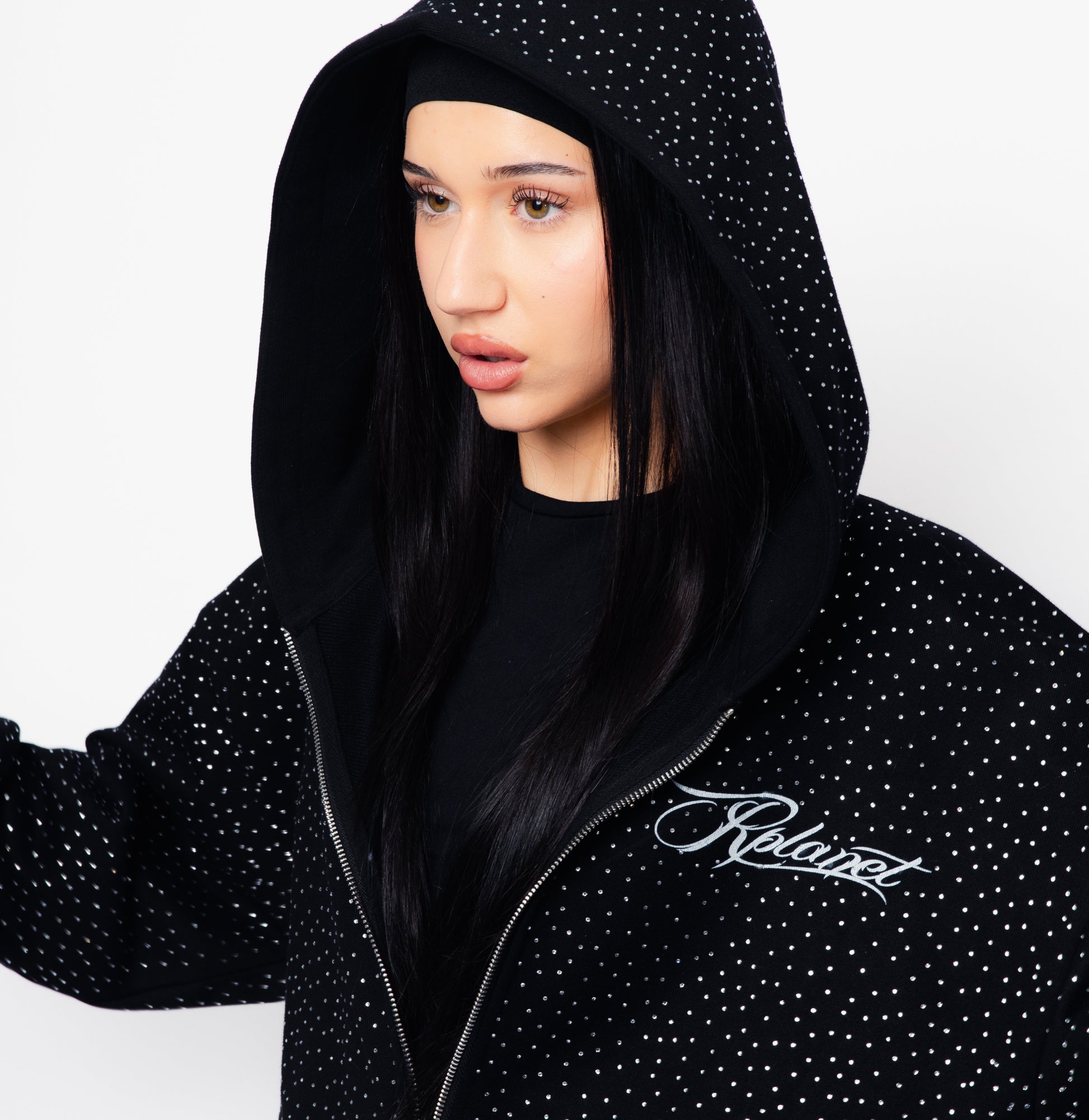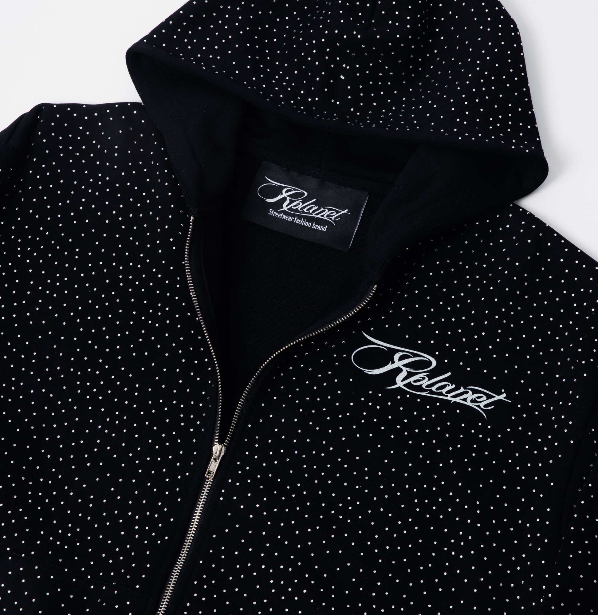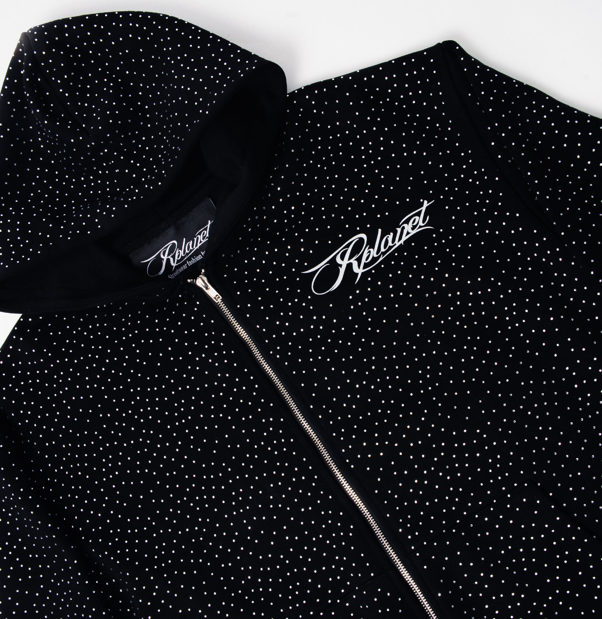 The Star Hoodie features shimmering silver diamond details that catch the light with every movement. Made from high-quality materials, it offers a premium feel and a clean, modern fit.