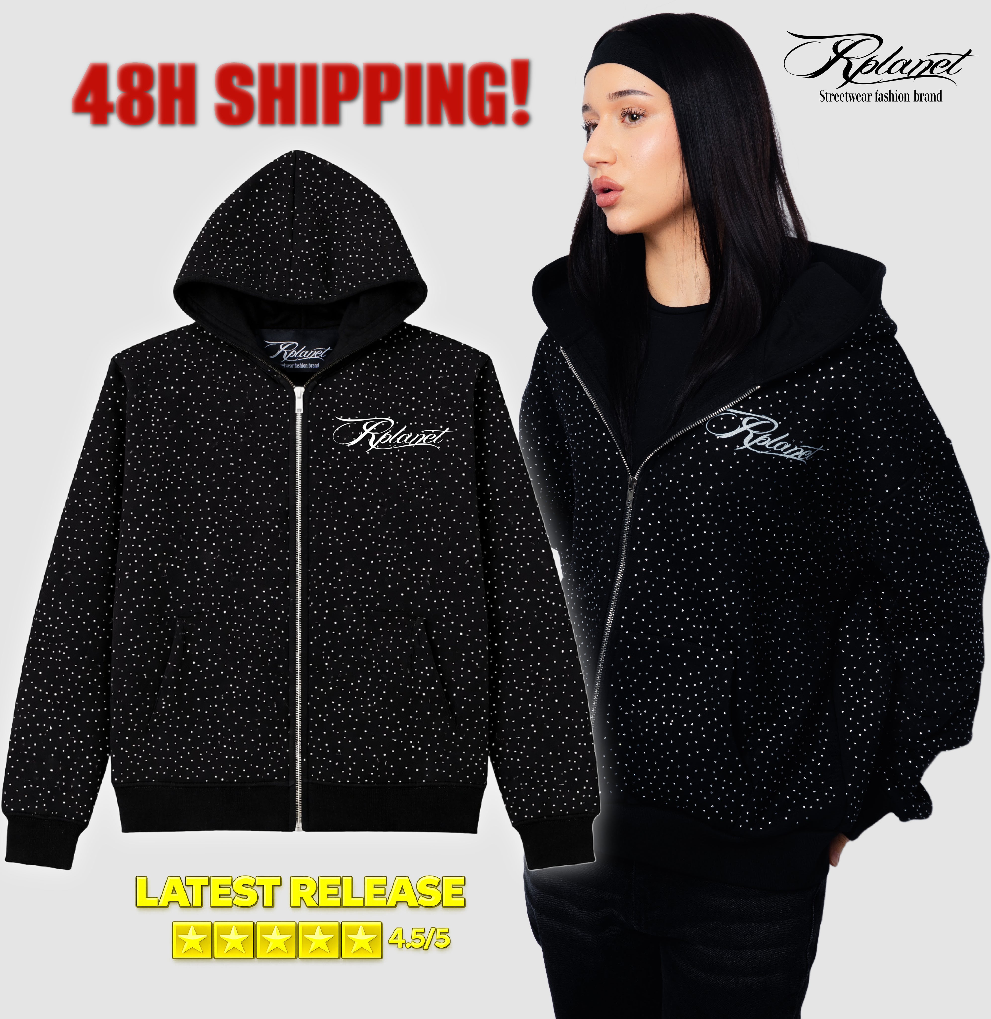 RPLANET BLACK FULL-ZIP HOODIE